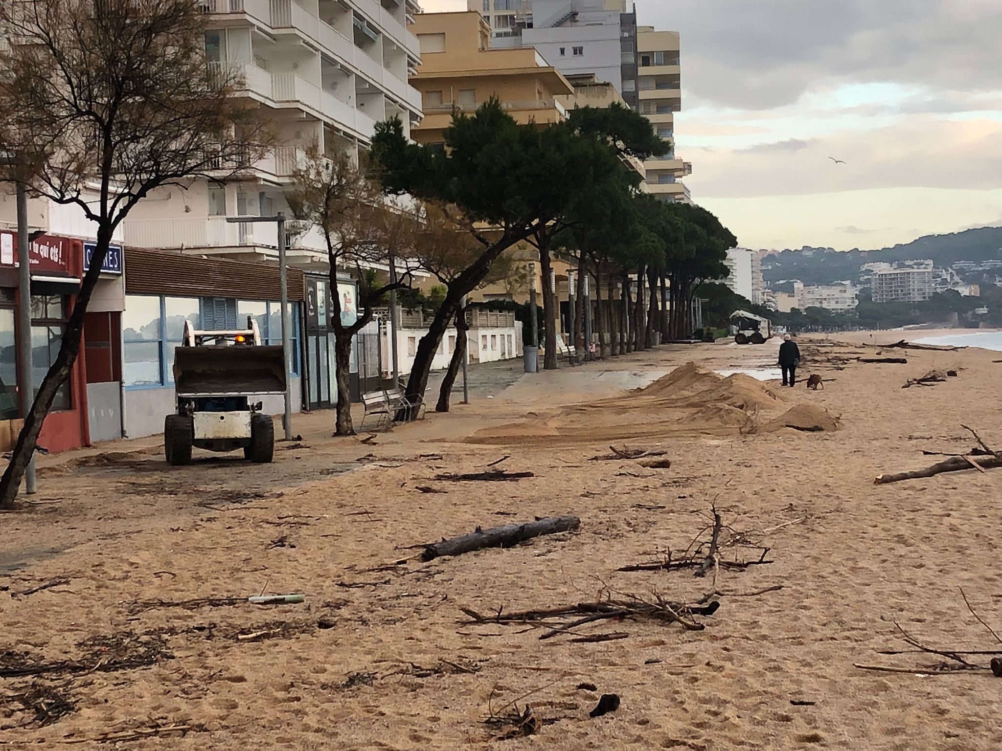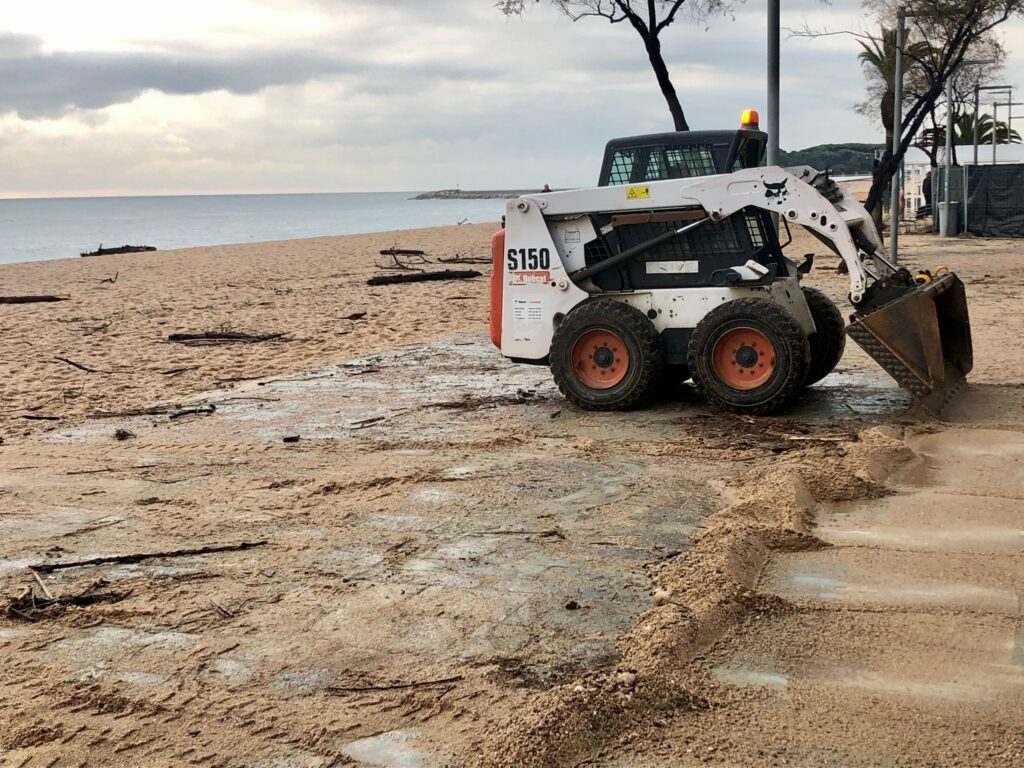 El consistori ha informat que el tram nord i centre del Passeig Marítim no ha patit afectacions mentre que a l’extrem sud s’ha acumulat una gran quantitat de sorra. Aquest dilluns al matí s’ha procedit a retirar-la i netejar-la amb maquinària diversa.